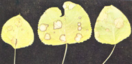 The most common fungi which cause damage are Taphrina populina Fr., Phyllosticta sp., Cercospora populina E. & E., Colletotrichum gloeosporioides Penz. These fungi overwinter on fallen leaves or twigs. In early spring spores are produced which infect leaves, causing death of leaf tissue. The affected area may be as small as a pinpoint or up to several inches in diameter. It can appear as a spot, ring, blotch, anthracnose. leaf curl, or leaf blister. Often more than one leaf disease is present on a single leaf.